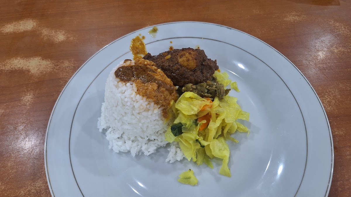 Delicious Nasi Padang and Redang Daging on the recommendation of my taxi driver. Restaurant is popular and busy when I arrive, but there are many staff and they are happy to assist me. Bowls of water are placed by the table for you to wash your hand if you need. A glass of hot water is also served. They always seem to serve with extra rice that I should have rejected. Now I feel so full. I got the Redang Daging and an egg. Paid 41k